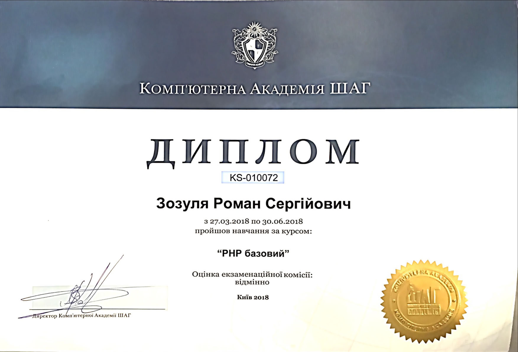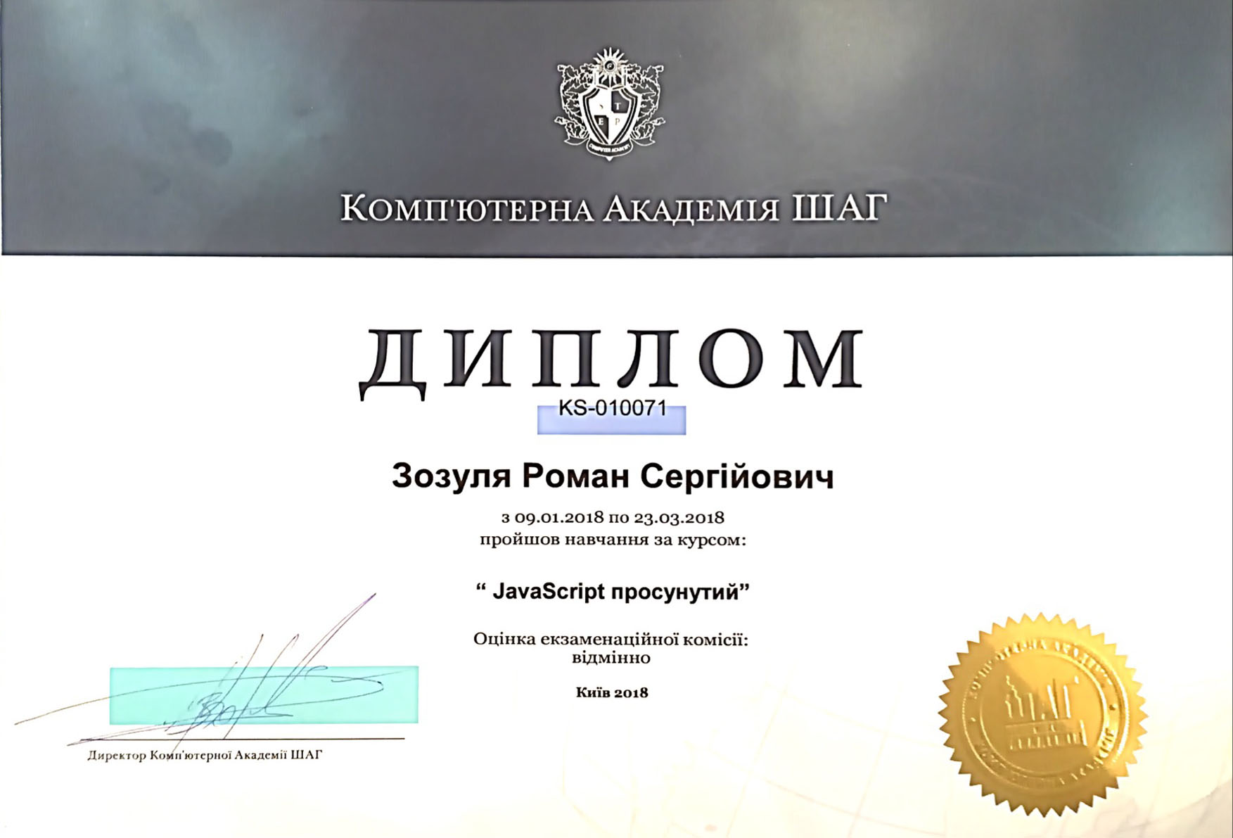 Фінанси і кредит (бакалавр, диплом з відзнакою), фінансові ринки (магістратура). Кваліфікація – економіст
