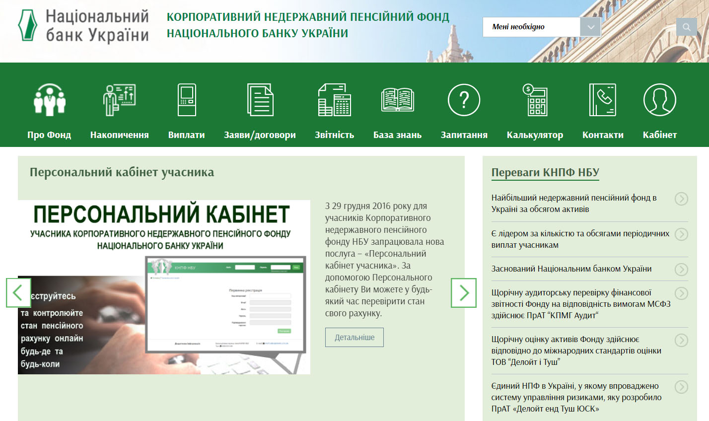 Національний банк України, Департамент з управління діяльністю КНПФ НБУ (пенсійний фонд НБУ)